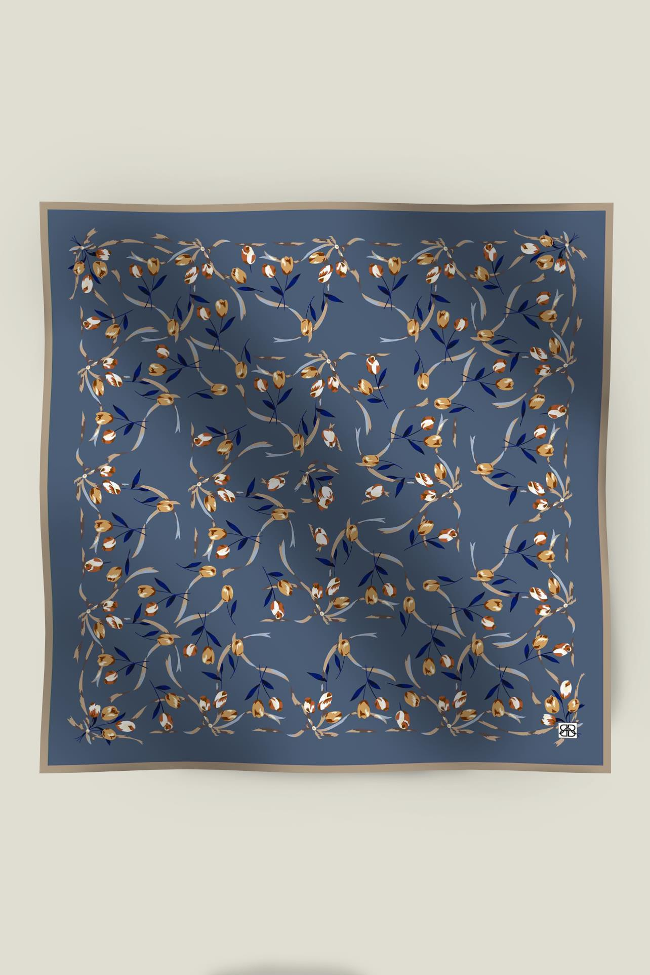 GONCA GÜL TİVİL İPEK EŞARP İNDİGO